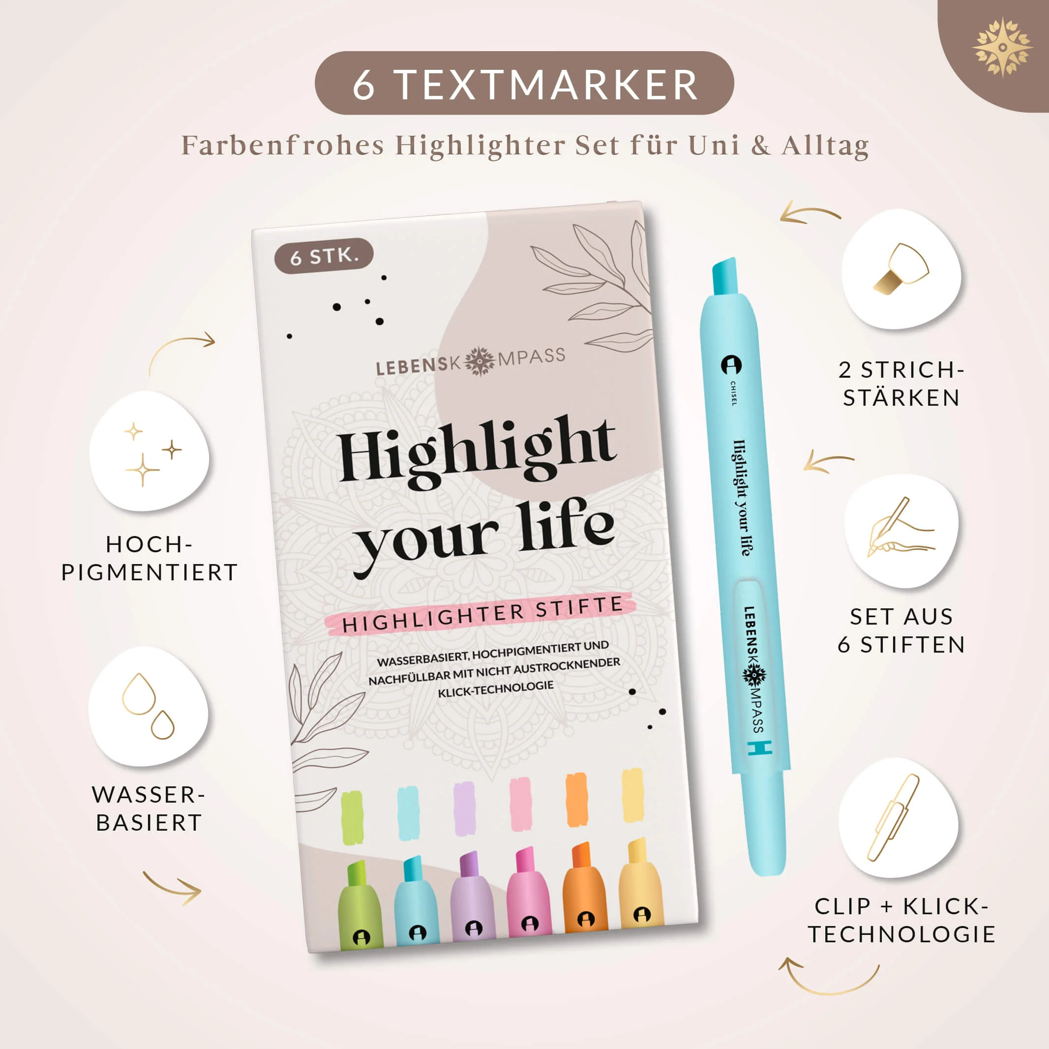 Textmarker Stifte - 6er Set Highlighter