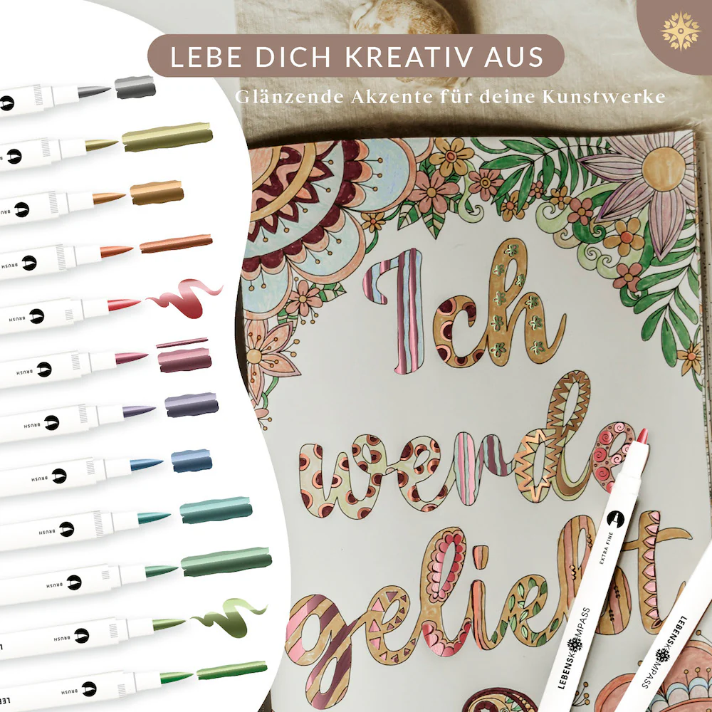 Metallic Dual Brush Pens - 12 bunte Pinselstifte