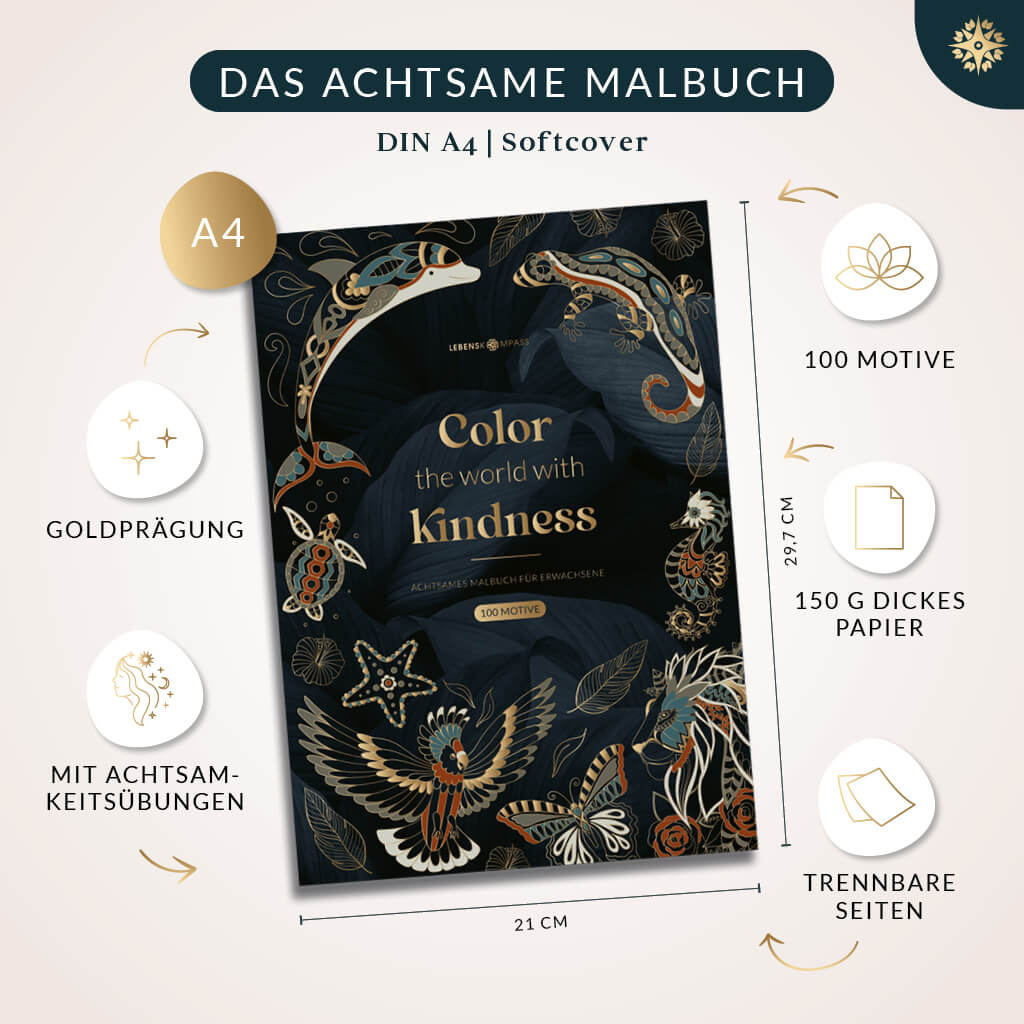 - Stabiles Softcover mit Goldveredelung